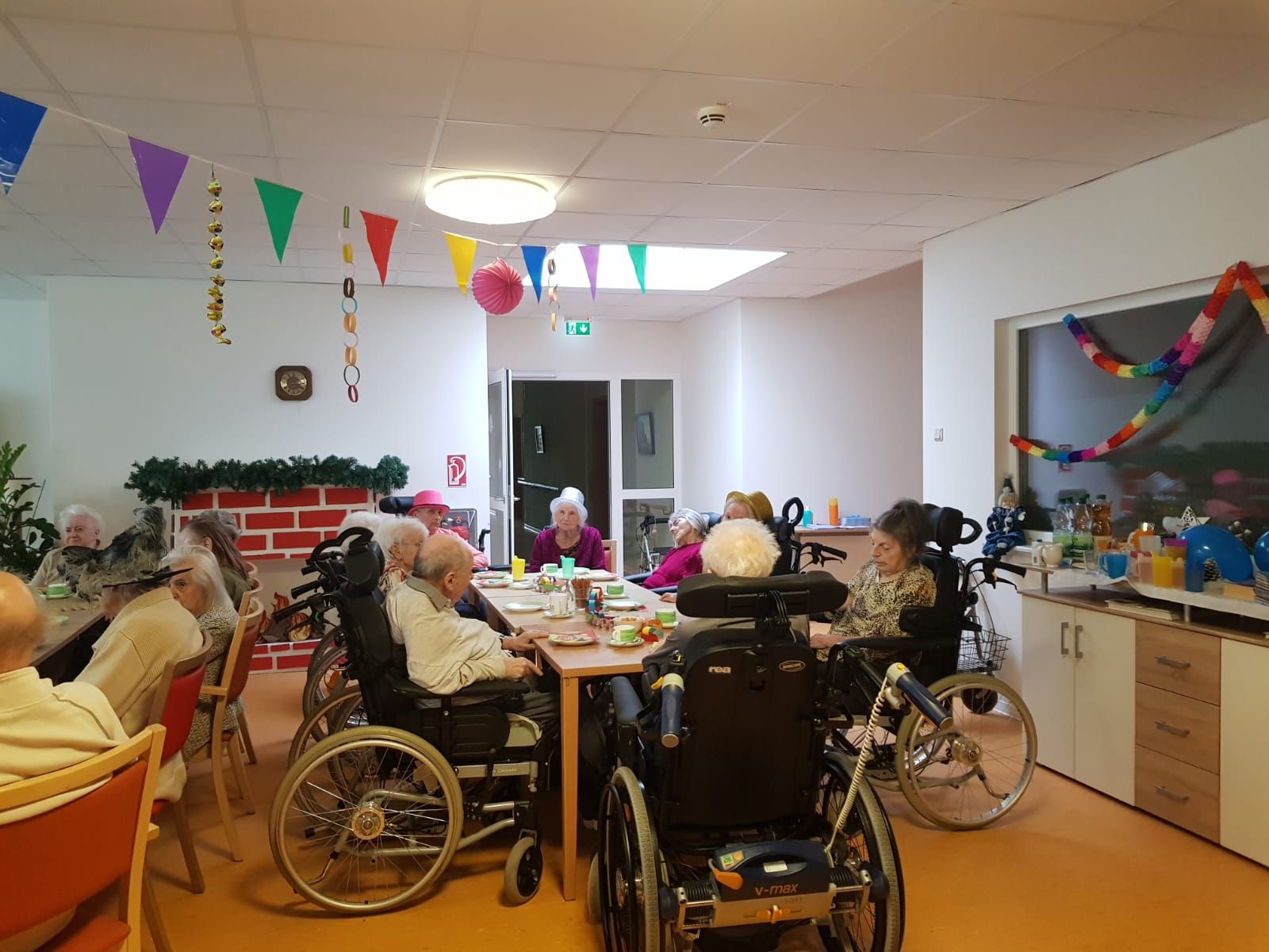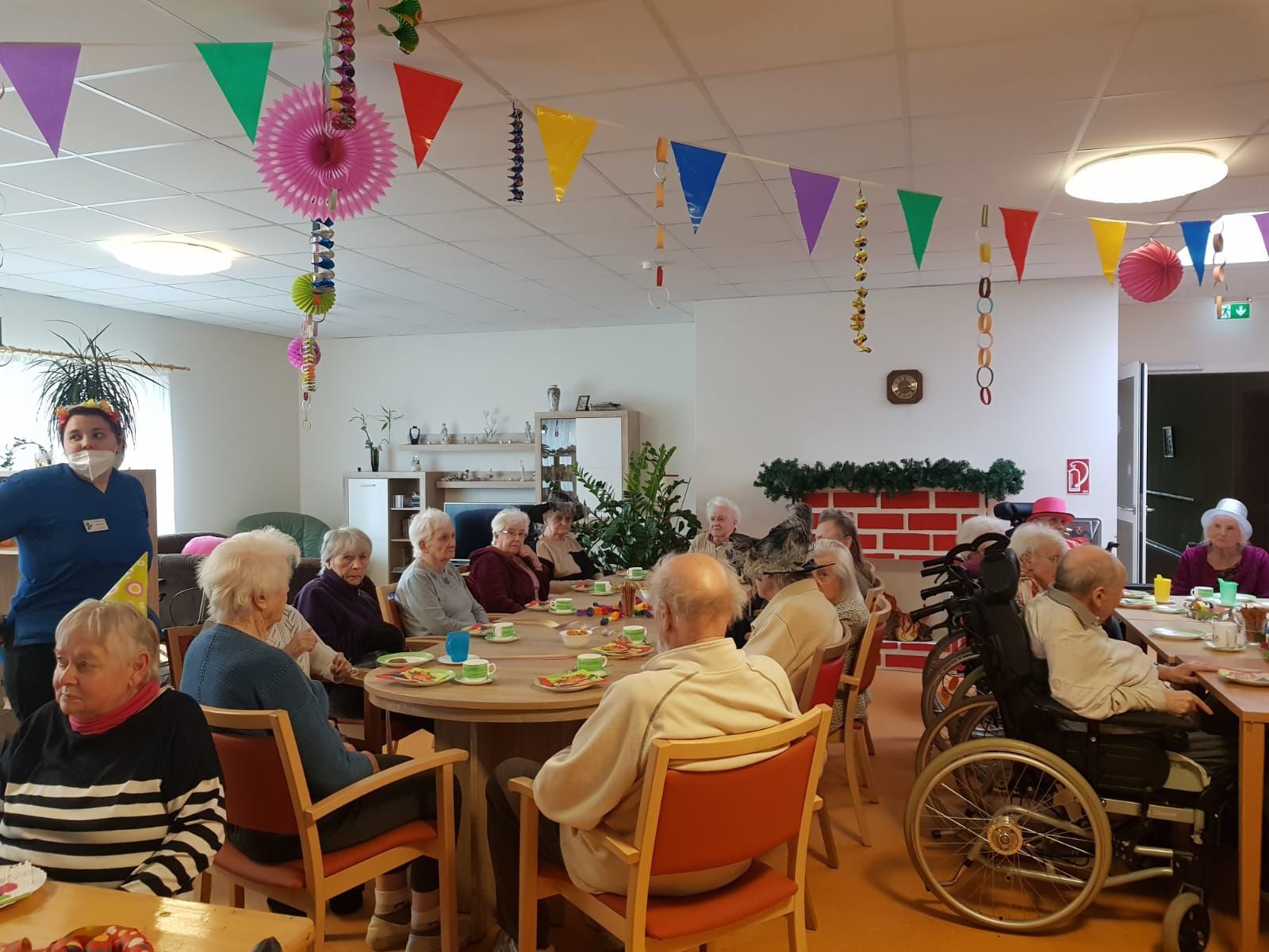 Wimpelketten und Girlanden an der Decke, Luftschlangen auf den Tischen sowie Partyhüte für die Teilnehmer: Am 21. Februar haben die Gäste der Tagespflege und Bewohner des Seniorenpflegezentrums in Hörnitz gemeinsam Fasching gefeiert. Die als Hexe und Pirat verkleideten Mitarbeiter veranstalteten mit ihnen kleine Spiele wie Konfettipusten oder Luftballons mit einem Strohhalm ansaugen und dem Nachbarn weitergeben. "Die Gäste haben sehr gern mitgemacht", berichten sie. Als Stärkung für zwischendurch gab es für alle Pfannkuchen und Malzbier, zudem standen Popcorn und Salzstangen als Snack auf den Tischen bereit. Höhepunkt war die Kürung des Faschingsprinzen: Über den Titel durfte sich Uwe Zandtke freuen.