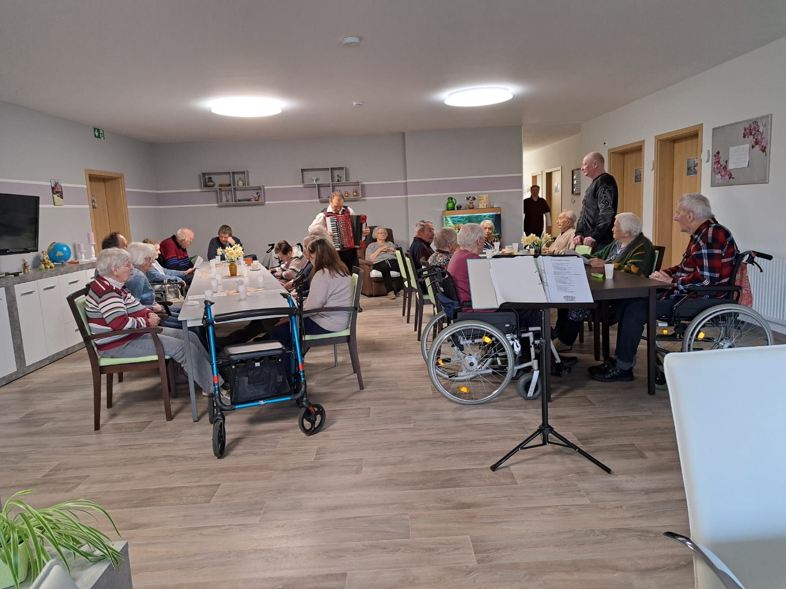 Am 13. April haben Bewohner und Mitarbeiter beider Tagespflegen einen Tag gemeinsam in Seifhennersdorf verbracht. Der startete mit einem Osterbrunch für die Gäste, bevor sie zum Mittagessen selbstgemachten Kartoffelsalat und Wiener gereicht bekamen. Für musikalische Unterhaltung sorgte Rolands Musik Mix, der mit seinem Akkordeon zum Mitsingen und -schunkeln animierte. "Den Gästen hat es sehr gut gefallen, was die Bilder auch erzählen", heißt es.
